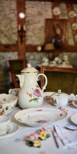 Wir servieren biologisches und regionales Essen. Tafeln und Trinken aus alten Porzellantellern und Gläsern, einmalig in den Historic Hotels Schweiz wie auch im Glarnerland.